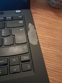 O computador portátil funciona sem problemas e, obviamente, não foi muito utilizado pelo proprietário anterior. No entanto, fiquei surpreendido ao descobrir que o revestimento do chassis de magnésio na caixa junto ao teclado está em falta numa área de aproximadamente 2x5 cm. Parece que foi aí colocado um autocolante da empresa, que foi retirado sem grande cuidado. Os danos são puramente estéticos, mas já comprei aparelhos recondicionados em melhores condições com o estado "bom".