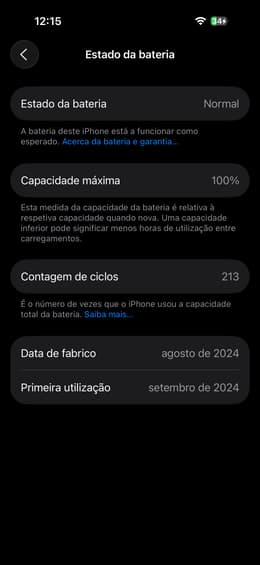 Equipamento conforme o esperado, excelente. A bateria realmente é nova com 100% de saúde, mas veio com mais de 200 ciclos…