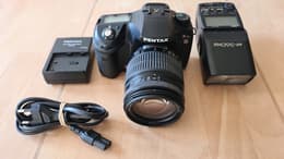 A câmara e a objetiva foram recebidas em excelentes condições, correspondendo às expectativas em todos os aspectos. Para além das expectativas, o conjunto incluía também um flash de sistema, pilhas e um carregador de pilhas. Juntamente com o manual (francês) e o recibo de compra original do primeiro proprietário. Portanto, esta compra superou as expectativas. Estou muito satisfeito com ela.